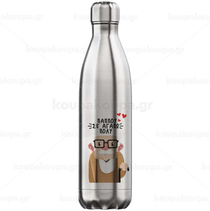 Παππού σε αγαπώ πολύ!, Μεταλλικό παγούρι θερμός Inox (Stainless steel), διπλού τοιχώματος, 750ml