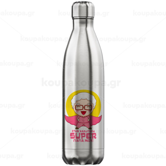 Στην καλύτερη Super γιαγιά μου!, Μεταλλικό παγούρι θερμός Inox (Stainless steel), διπλού τοιχώματος, 750ml