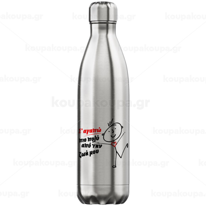 Σ'αγαπώ πιο πολύ από την ζωή μου!!!, Μεταλλικό παγούρι θερμός Inox (Stainless steel), διπλού τοιχώματος, 750ml