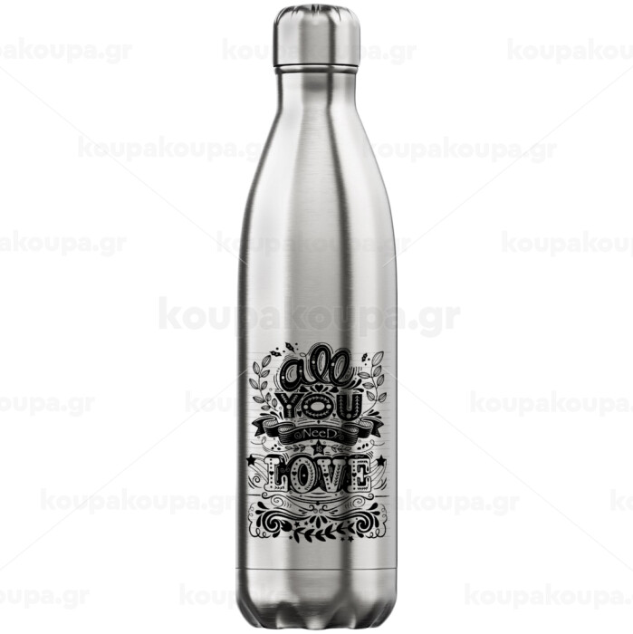 All you need is love, Μεταλλικό παγούρι θερμός Inox (Stainless steel), διπλού τοιχώματος, 750ml