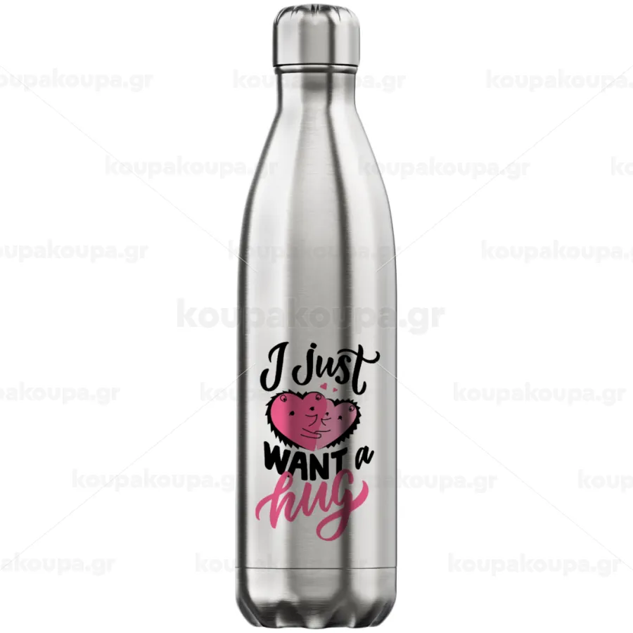 I Just want a hug!, Μεταλλικό παγούρι θερμός Inox (Stainless steel), διπλού τοιχώματος, 750ml