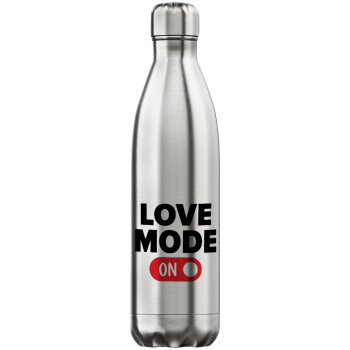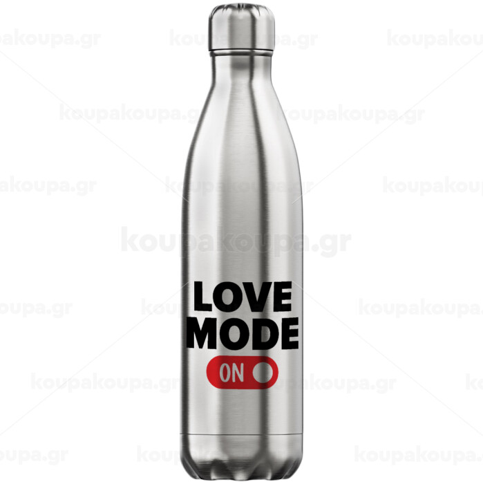 LOVE MODE ON, Μεταλλικό παγούρι θερμός Inox (Stainless steel), διπλού τοιχώματος, 750ml