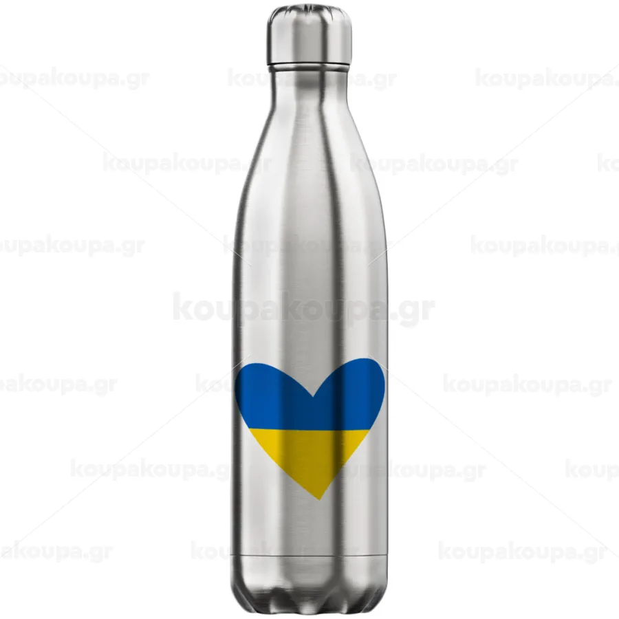 UKRAINE heart, Μεταλλικό παγούρι θερμός Inox (Stainless steel), διπλού τοιχώματος, 750ml