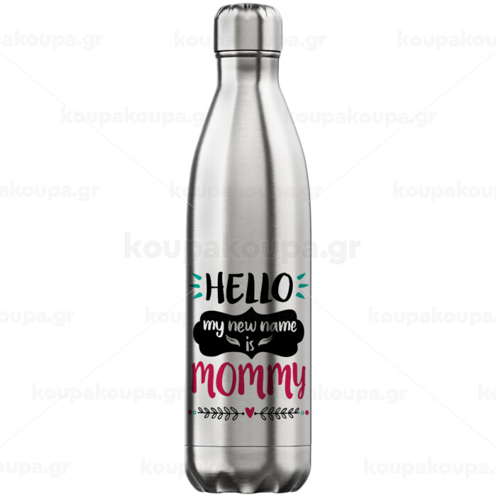 Hello, my new name is Mommy, Μεταλλικό παγούρι θερμός Inox (Stainless steel), διπλού τοιχώματος, 750ml