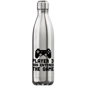 Player 3 has entered the Game, Μεταλλικό παγούρι θερμός Inox (Stainless steel), διπλού τοιχώματος, 750ml