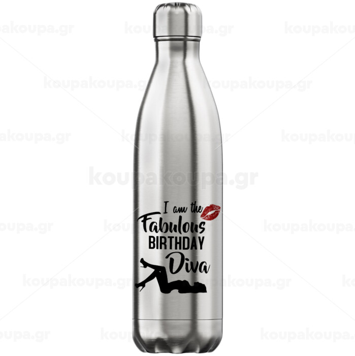 I am the fabulous Birthday Diva, Μεταλλικό παγούρι θερμός Inox (Stainless steel), διπλού τοιχώματος, 750ml