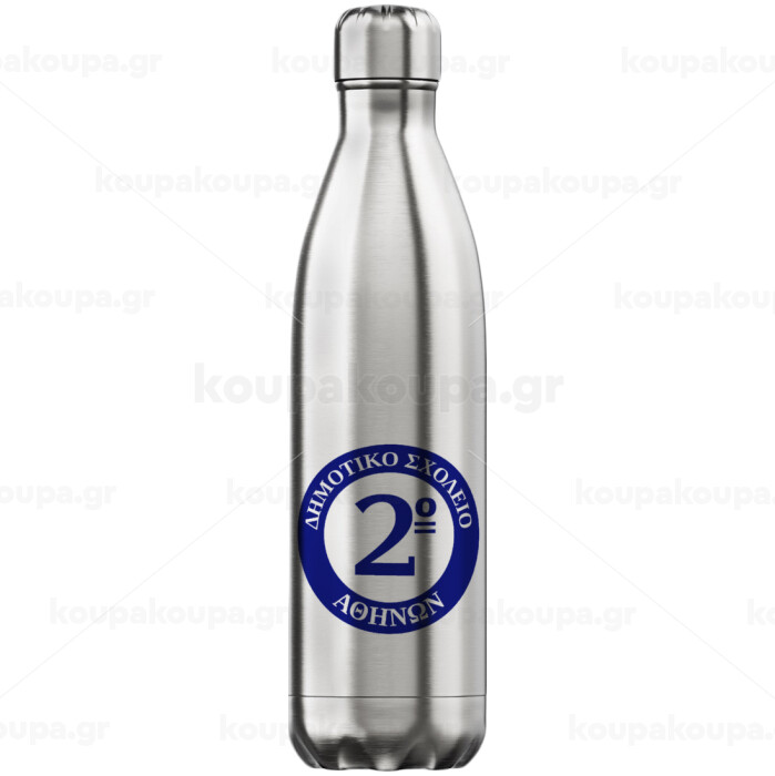 Έμβλημα Σχολικό μπλε, Μεταλλικό παγούρι θερμός Inox (Stainless steel), διπλού τοιχώματος, 750ml