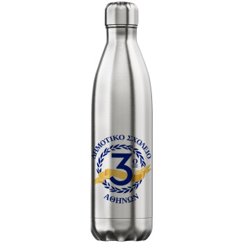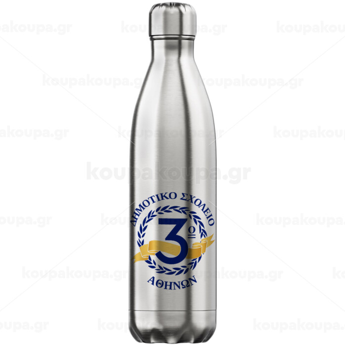 Έμβλημα Σχολικό μπλε, Μεταλλικό παγούρι θερμός Inox (Stainless steel), διπλού τοιχώματος, 750ml