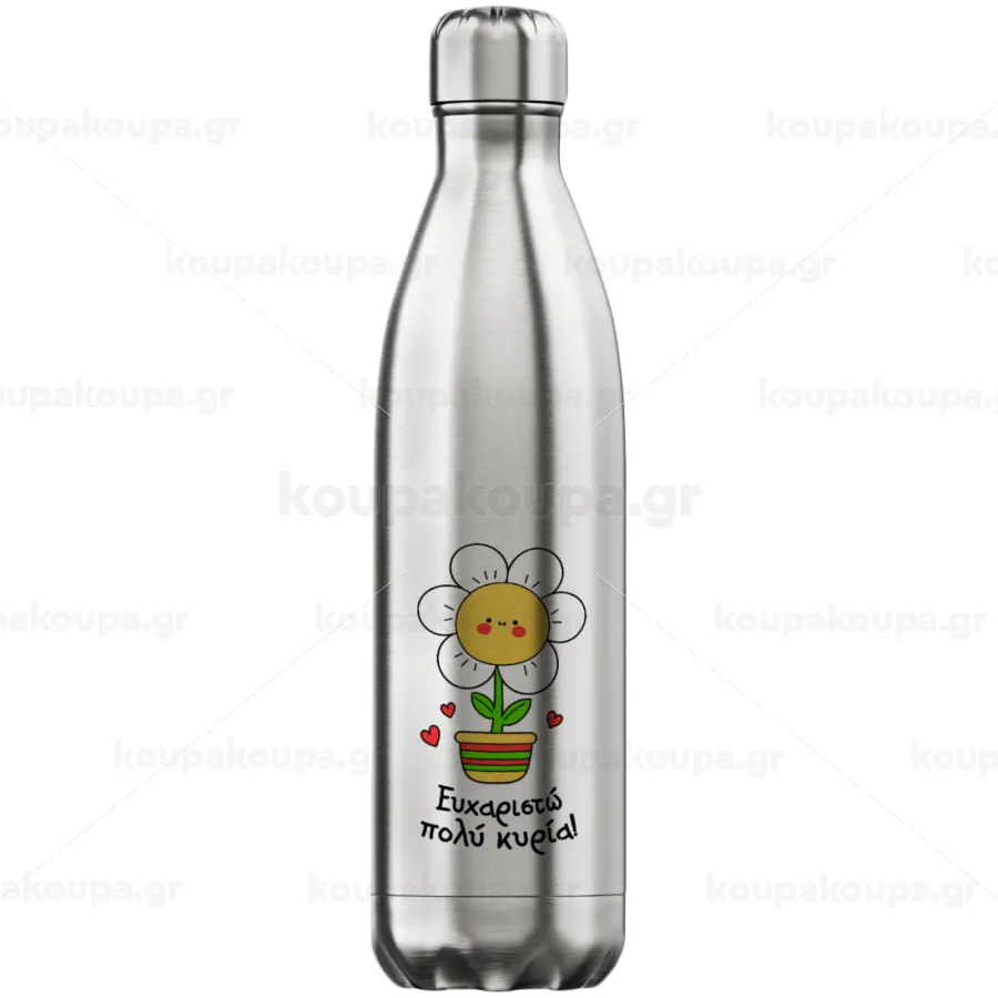 Ευχαριστώ πολύ κυρία!!!, Μεταλλικό παγούρι θερμός Inox (Stainless steel), διπλού τοιχώματος, 750ml