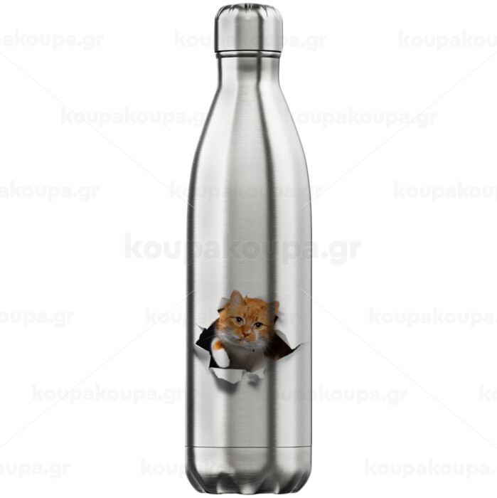 Cat cracked, Μεταλλικό παγούρι θερμός Inox (Stainless steel), διπλού τοιχώματος, 750ml