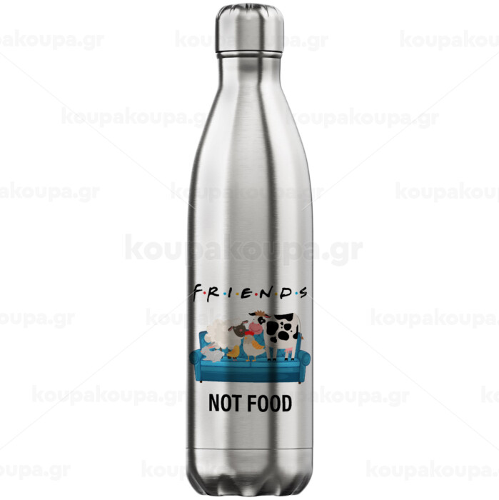 friends, not food, Μεταλλικό παγούρι θερμός Inox (Stainless steel), διπλού τοιχώματος, 750ml