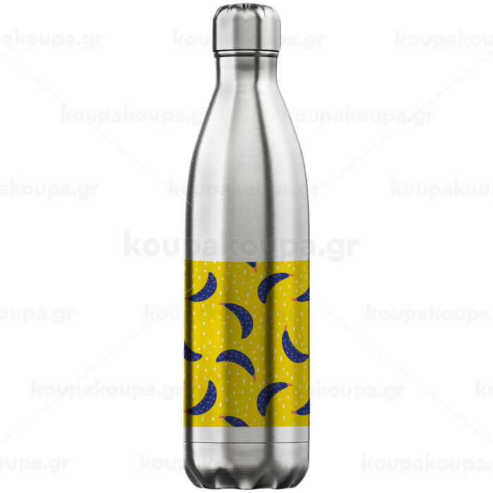 Yellow seamless with blue bananas, Μεταλλικό παγούρι θερμός Inox (Stainless steel), διπλού τοιχώματος, 750ml