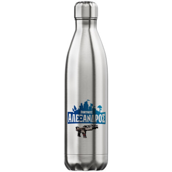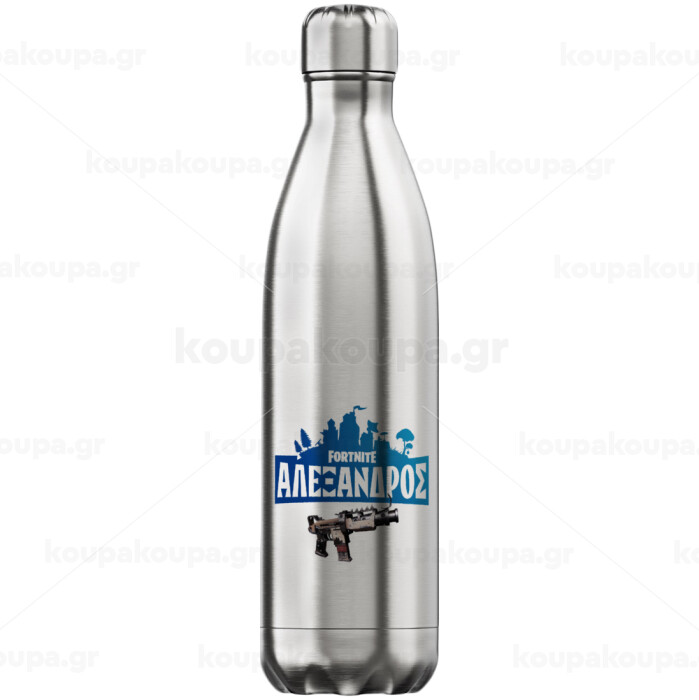 Fortnite with gun με το όνομα σου, Μεταλλικό παγούρι θερμός Inox (Stainless steel), διπλού τοιχώματος, 750ml