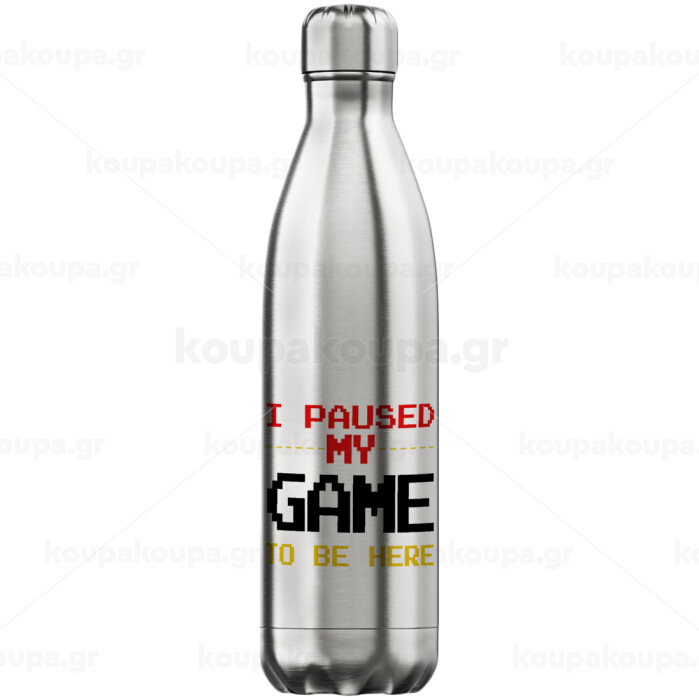 I paused my game to be here, Μεταλλικό παγούρι θερμός Inox (Stainless steel), διπλού τοιχώματος, 750ml