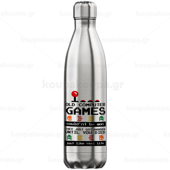 OLD computer games couldn't be won just like real life!, Μεταλλικό παγούρι θερμός Inox (Stainless steel), διπλού τοιχώματος, 750ml