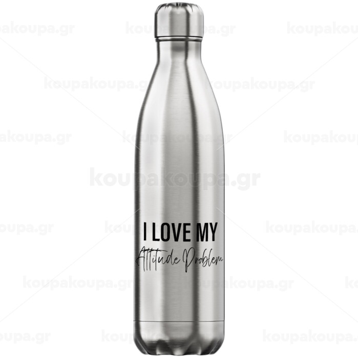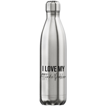 I love my attitude problem, Μεταλλικό παγούρι θερμός Inox (Stainless steel), διπλού τοιχώματος, 750ml