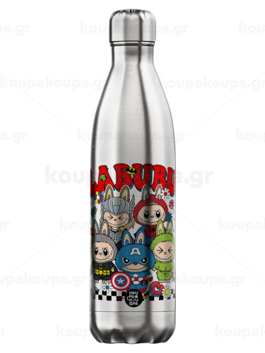 Labubu superheroes, Μεταλλικό παγούρι θερμός Inox (Stainless steel), διπλού τοιχώματος, 750ml