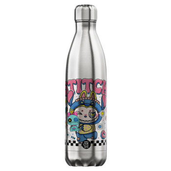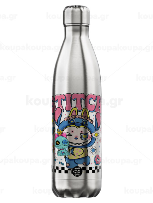 Labubu Stitch, Μεταλλικό παγούρι θερμός Inox (Stainless steel), διπλού τοιχώματος, 750ml
