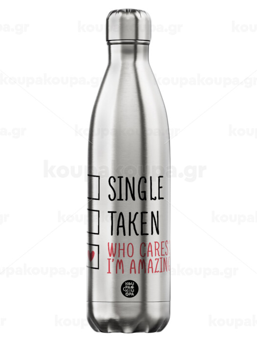 Single, Taken, Who cares i'm amazing, Μεταλλικό παγούρι θερμός Inox (Stainless steel), διπλού τοιχώματος, 750ml