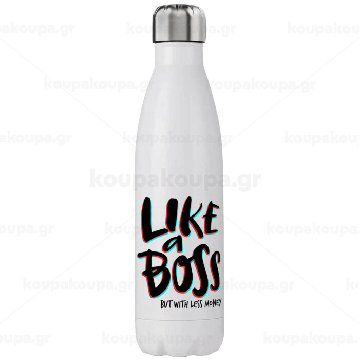 Like a boss, but with less money!!!, Μεταλλικό παγούρι θερμός (Stainless steel), διπλού τοιχώματος, 750ml