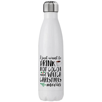 I just want to drink hot cocoa and watch christmas movies, Μεταλλικό παγούρι θερμός (Stainless steel), διπλού τοιχώματος, 750ml