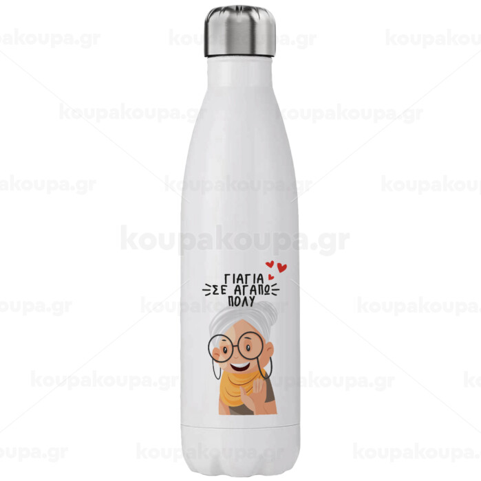 Γιαγιά σε αγαπώ πολύ!, Μεταλλικό παγούρι θερμός (Stainless steel), διπλού τοιχώματος, 750ml
