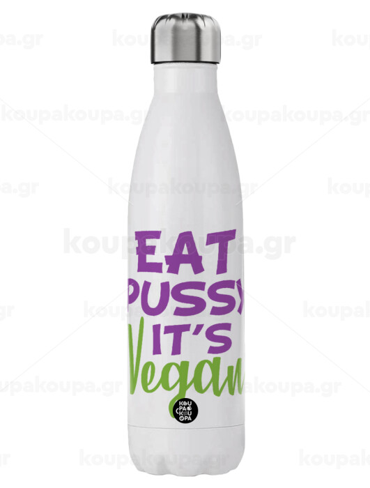 EAT pussy it's vegan, Μεταλλικό παγούρι θερμός (Stainless steel), διπλού τοιχώματος, 750ml
