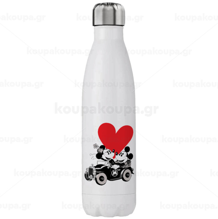 Mickey & Minnie love car, Μεταλλικό παγούρι θερμός (Stainless steel), διπλού τοιχώματος, 750ml