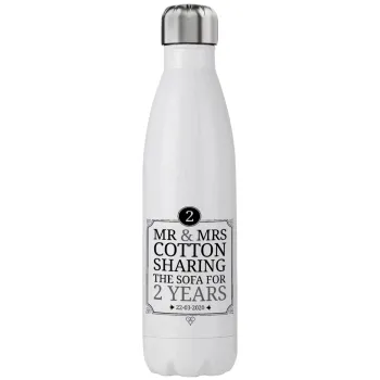 Mr & Mrs Sharing the sofa, Μεταλλικό παγούρι θερμός (Stainless steel), διπλού τοιχώματος, 750ml
