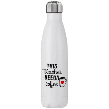 Τhis teacher needs coffee, Μεταλλικό παγούρι θερμός (Stainless steel), διπλού τοιχώματος, 750ml