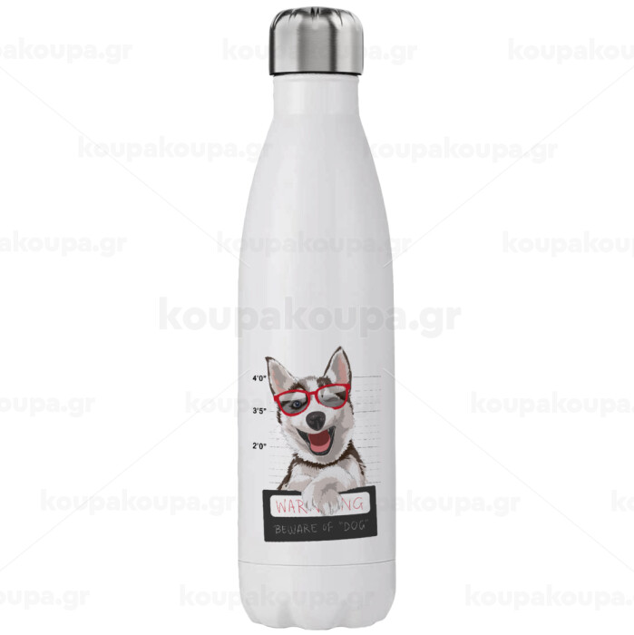 Warning, beware of Dog, Μεταλλικό παγούρι θερμός (Stainless steel), διπλού τοιχώματος, 750ml