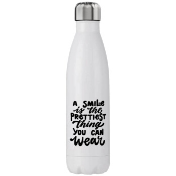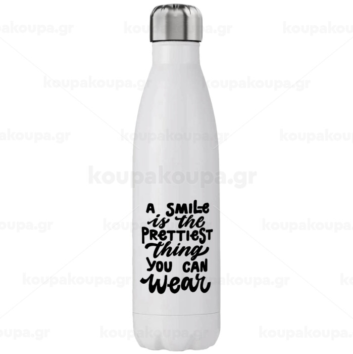 A smile is the prettiest thing you can wear, Μεταλλικό παγούρι θερμός (Stainless steel), διπλού τοιχώματος, 750ml