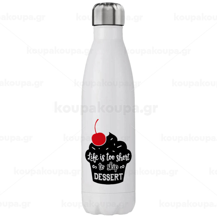 Life is too short, to skip Dessert, Μεταλλικό παγούρι θερμός (Stainless steel), διπλού τοιχώματος, 750ml