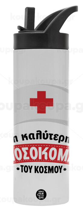 Η καλύτερη νοσοκόμα του κόσμου!!!, Μεταλλικό παγούρι θερμός με καλαμάκι & χειρολαβή, ανοξείδωτο ατσάλι (Stainless steel 304), διπλού τοιχώματος, 600ml