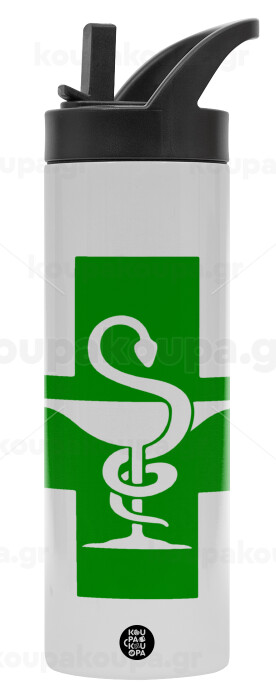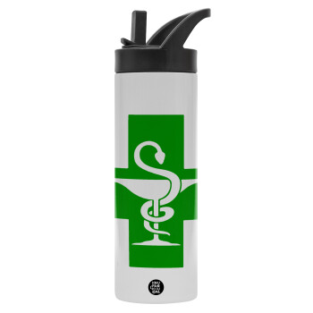 Φαρμακείο, Μεταλλικό παγούρι θερμός με καλαμάκι & χειρολαβή, ανοξείδωτο ατσάλι (Stainless steel 304), διπλού τοιχώματος, 600ml