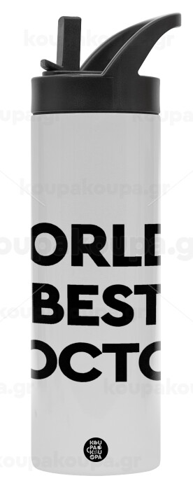 World's Best Doctor, Μεταλλικό παγούρι θερμός με καλαμάκι & χειρολαβή, ανοξείδωτο ατσάλι (Stainless steel 304), διπλού τοιχώματος, 600ml