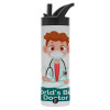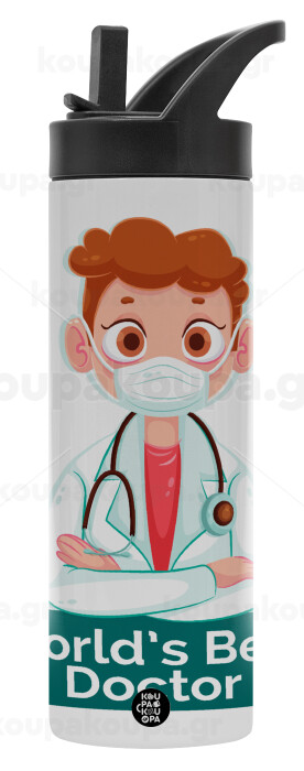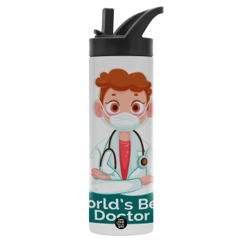 World's Best Doctor, Μεταλλικό παγούρι θερμός με καλαμάκι & χειρολαβή, ανοξείδωτο ατσάλι (Stainless steel 304), διπλού τοιχώματος, 600ml