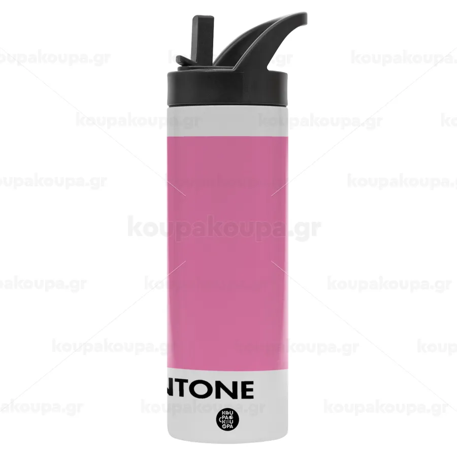 PANTONE Pink C, Μεταλλικό παγούρι θερμός με καλαμάκι & χειρολαβή, ανοξείδωτο ατσάλι (Stainless steel 304), διπλού τοιχώματος, 600ml