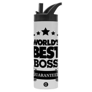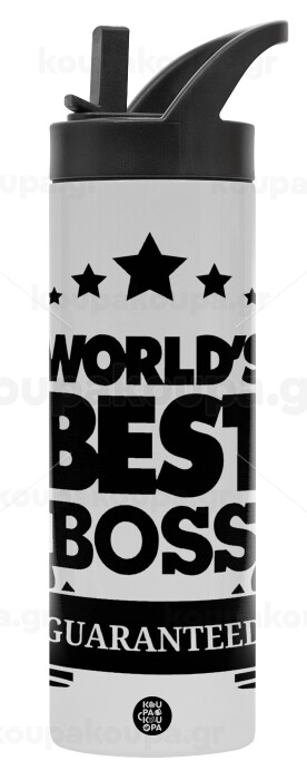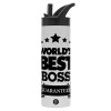 World's best boss stars, Μεταλλικό παγούρι θερμός με καλαμάκι & χειρολαβή, ανοξείδωτο ατσάλι (Stainless steel 304), διπλού τοιχώματος, 600ml