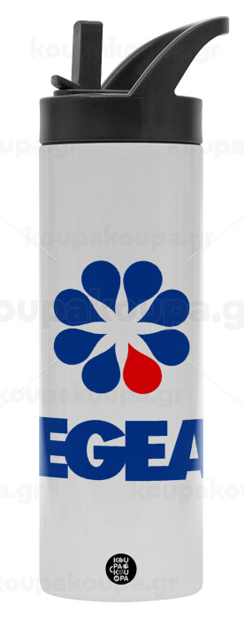 Πρατήριο καυσίμων AEGEAN, Μεταλλικό παγούρι θερμός με καλαμάκι & χειρολαβή, ανοξείδωτο ατσάλι (Stainless steel 304), διπλού τοιχώματος, 600ml
