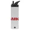 Canon, Μεταλλικό παγούρι θερμός με καλαμάκι & χειρολαβή, ανοξείδωτο ατσάλι (Stainless steel 304), διπλού τοιχώματος, 600ml
