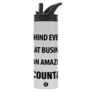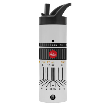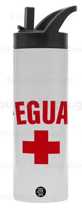 Lifeguard, Μεταλλικό παγούρι θερμός με καλαμάκι & χειρολαβή, ανοξείδωτο ατσάλι (Stainless steel 304), διπλού τοιχώματος, 600ml