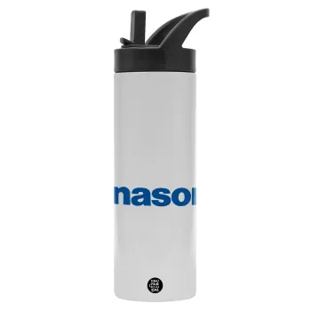 Panasonic, Μεταλλικό παγούρι θερμός με καλαμάκι & χειρολαβή, ανοξείδωτο ατσάλι (Stainless steel 304), διπλού τοιχώματος, 600ml