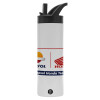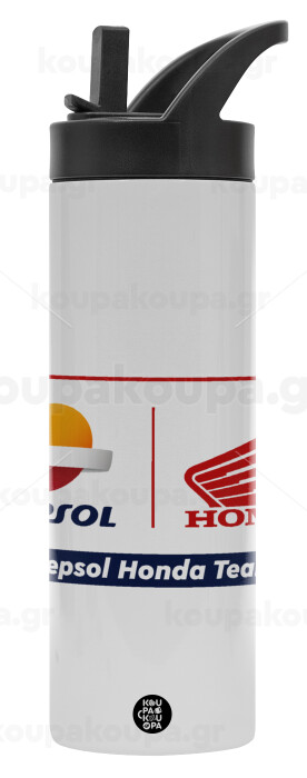 Honda Repsol Team, Μεταλλικό παγούρι θερμός με καλαμάκι & χειρολαβή, ανοξείδωτο ατσάλι (Stainless steel 304), διπλού τοιχώματος, 600ml