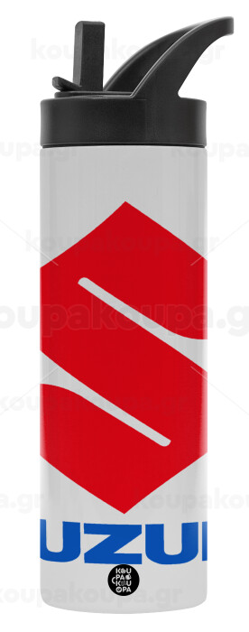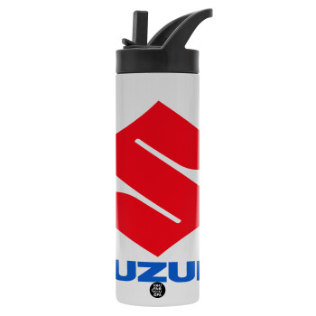 SUZUKI, Μεταλλικό παγούρι θερμός με καλαμάκι & χειρολαβή, ανοξείδωτο ατσάλι (Stainless steel 304), διπλού τοιχώματος, 600ml