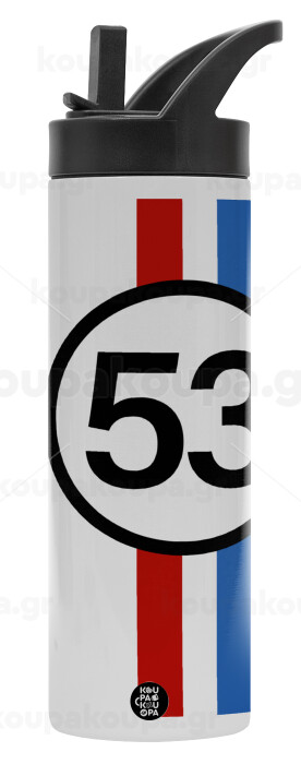 VW Herbie 53, Μεταλλικό παγούρι θερμός με καλαμάκι & χειρολαβή, ανοξείδωτο ατσάλι (Stainless steel 304), διπλού τοιχώματος, 600ml