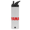 Yamaha, Μεταλλικό παγούρι θερμός με καλαμάκι & χειρολαβή, ανοξείδωτο ατσάλι (Stainless steel 304), διπλού τοιχώματος, 600ml