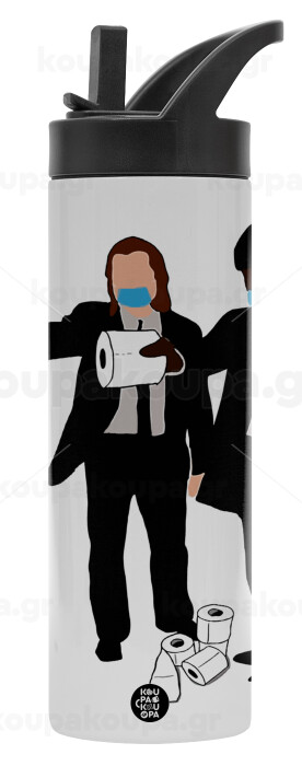 Pulp Fiction 3 meter away, Μεταλλικό παγούρι θερμός με καλαμάκι & χειρολαβή, ανοξείδωτο ατσάλι (Stainless steel 304), διπλού τοιχώματος, 600ml