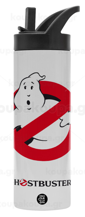 Ghostbusters, Μεταλλικό παγούρι θερμός με καλαμάκι & χειρολαβή, ανοξείδωτο ατσάλι (Stainless steel 304), διπλού τοιχώματος, 600ml