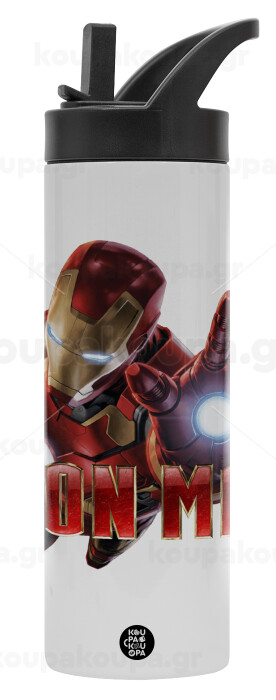 Ironman, Μεταλλικό παγούρι θερμός με καλαμάκι & χειρολαβή, ανοξείδωτο ατσάλι (Stainless steel 304), διπλού τοιχώματος, 600ml